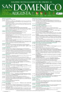 Il 24 maggio, giorno della Festa del Patrocinio, alle 10.30 presso la Chiesa di San Domenico si terrà la Solenne Concelebrazione Eucaristica con Penegirico del Santo Patrono. All’offertorio il Sindaco offrirà un cero votivo al Santo Patrono perché protegga e custodisca la città di Augusta. Alle ore 19, è attesa l’uscita trionfale del Simulacro del Santo Patrono e la processione per le strade di Augusta.