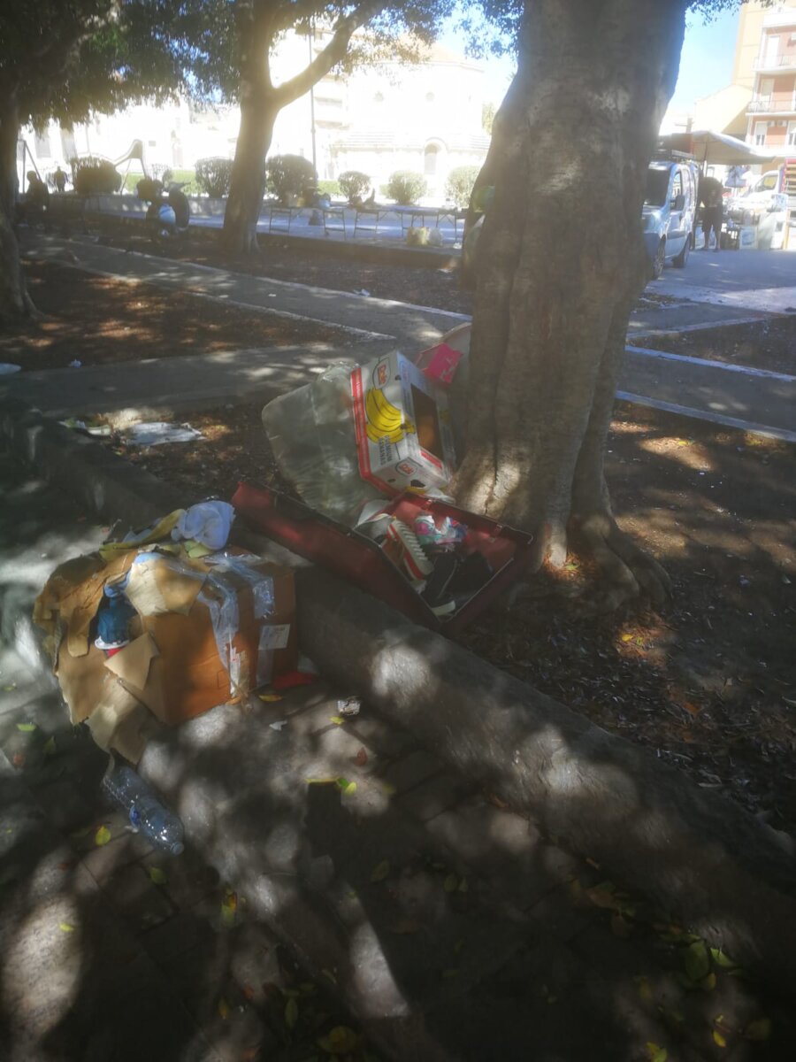 Non solo fiera del mercoledì. Anche per il mercato domenicale di piazza Santa Lucia c’è un problema rifiuti. Al termine dell’appuntamento settimanale, anche qui una valanga di spazzatura. Cartoni, buste, resti di organico e altri prodotti: tutto viene accatastato alla bell’e meglio e lasciato in più punti della piazza, dentro e fuori l’ampio perimetro di un luogo simbolo, nel cuore della storica Borgata.