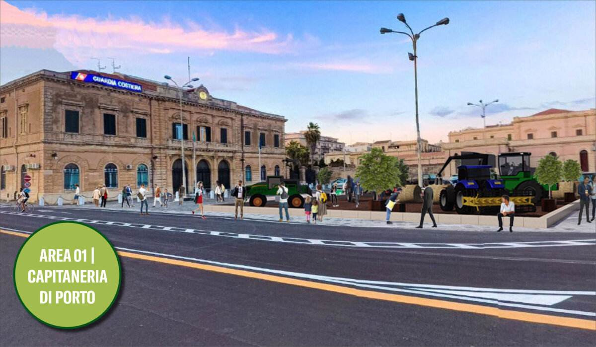 Da metà settembre i lavori di allestimento entreranno nel vivo. Ma iniziamo a immaginare quello che sarà grazie ai primi render grafici disponibili. Iniziamo da piazzale IV Novembre (pressi Capitaneria di Porto), dove sarà simulato un cantiere di lavoro agricolo: dalla preparazione del terreno alla messa a dimora delle piantine tramite macchine specializzate. Saranno presenti tre isole tematiche dedicate a macchine e attrezzature per coltivazioni cerealicole in campo aperto (mietitrebbie, trattori ad alta potenza, rotopresse, seminatrici) e colture orticole.