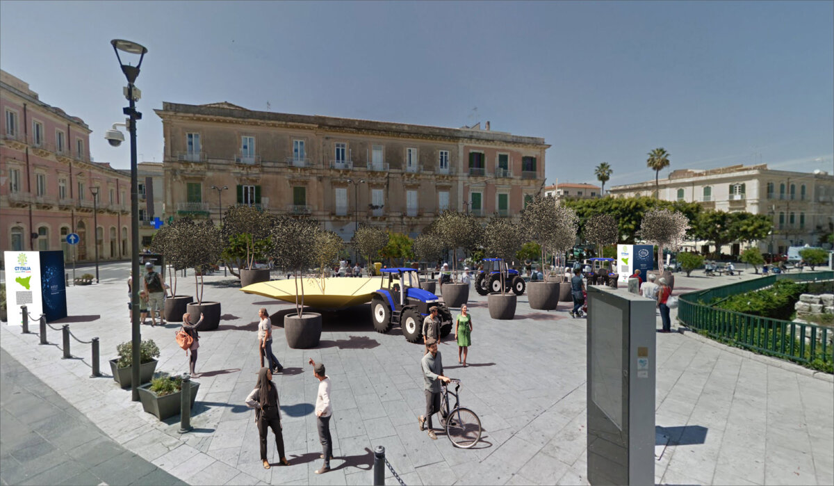 In via Minerva sorgeranno un agrumeto e filari di vigneti tra i prospetti laterali del Duomo e del Vermexio. In questo scenario bucolico, saranno in esposizione le ultime tecnologie impiegate in frutteti e vigneti, tra cui robot e altri mezzi autonomi. E ancora sensori, software di gestione ed altre apparecchiature digitali per l’agricoltura.