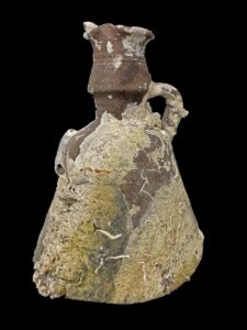 Le prime tracce del relitto furono individuate 6 anni fa a circa un miglio dalla costa siracusana, alla profondità di 70 metri, dall’ispettore onorario per il patrimonio culturale sommerso Fabio Portella, insieme a Stefano Gualtieri, nel corso di un’immersione subacquea per la mappatura dei cavi telegrafici della Pirelli posati alla fine dell’800. Nel 2021 fu individuato il vero e proprio nucleo del sito, databile in via preliminare tra il V e il VI secolo d.C., e costituito da una grande quantità di contenitori ceramici, articolati in quattro moduli di differenti grandezze e da coperchi appartenenti a tre varianti morfologiche. Dopo la segnalazione alla Soprintendenza del Mare, fu autorizzato da quest’ultima il recupero di alcuni reperti ritenuti utili per la caratterizzazione dei materiali: due olle, tre coperchi e un bollitore monoansato.
