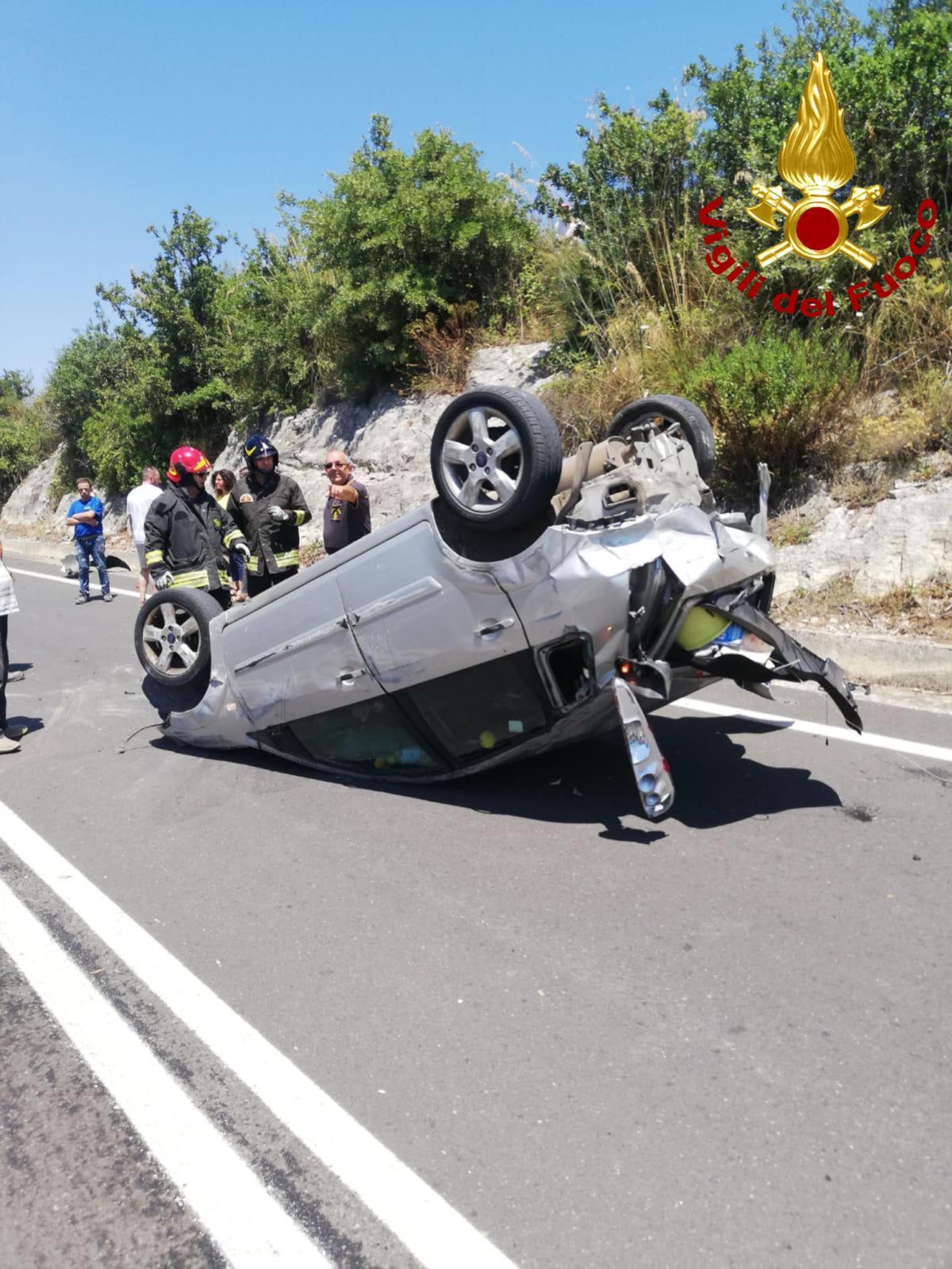Auto finisce cappottata dopo tamponamento: due feriti