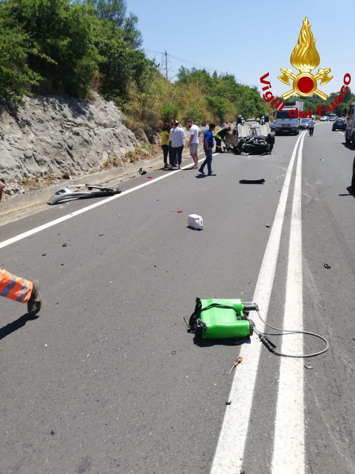Un tamponamento e poi una vettura si è ribaltata, finendo capottata. Sono dovuti intervenirw i vigili del fuoco per estrarre l’uomo alla guida. I soccorritori si sono occupati anche della messa in sicurezza del tratto stradale.