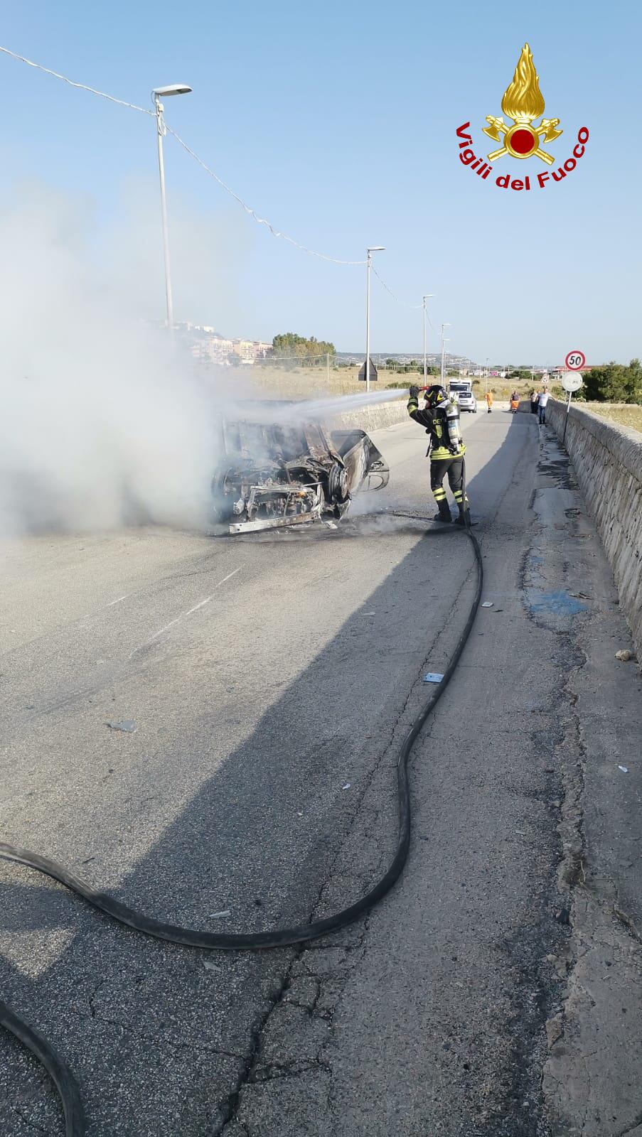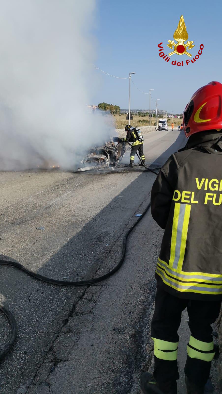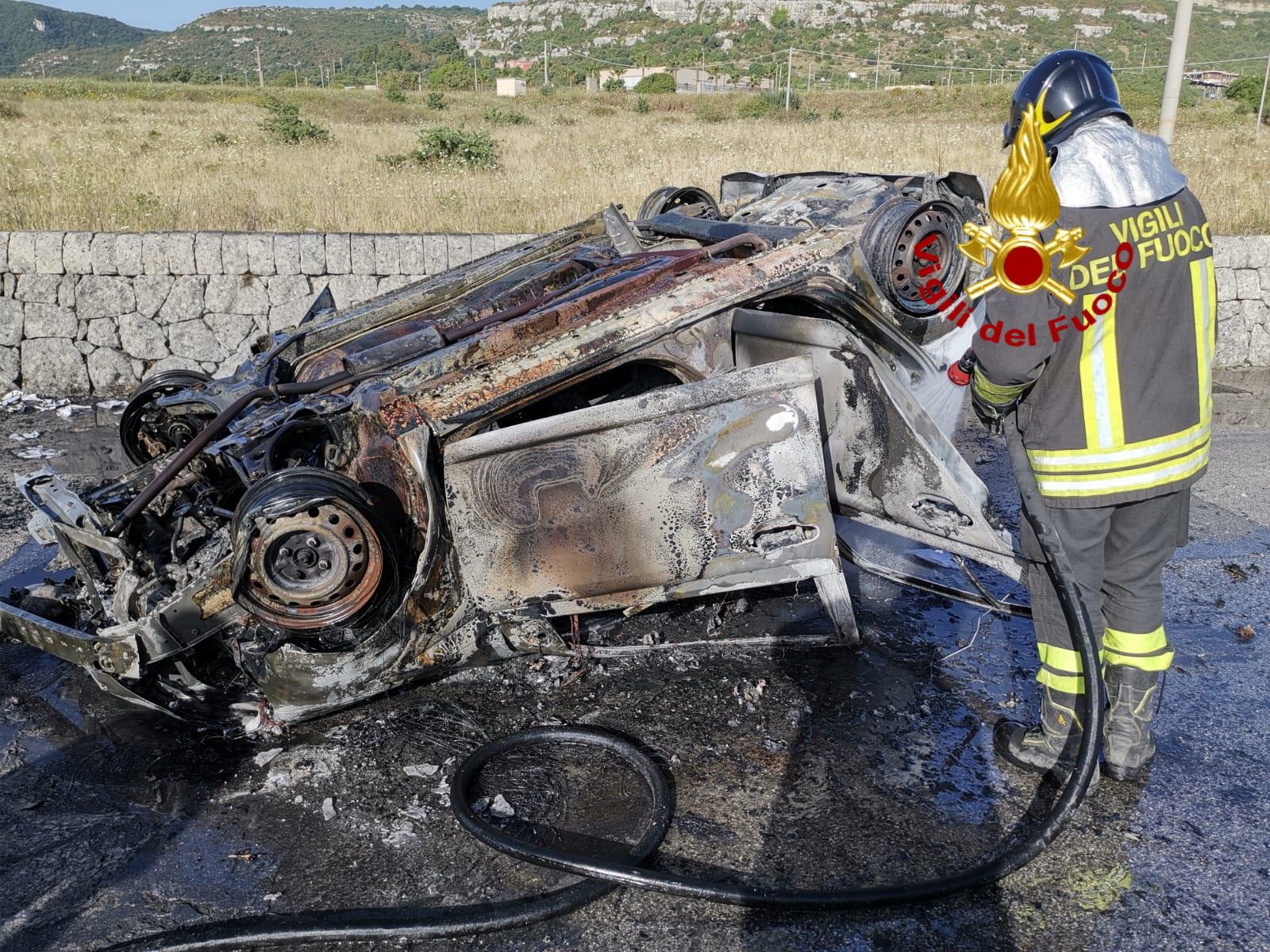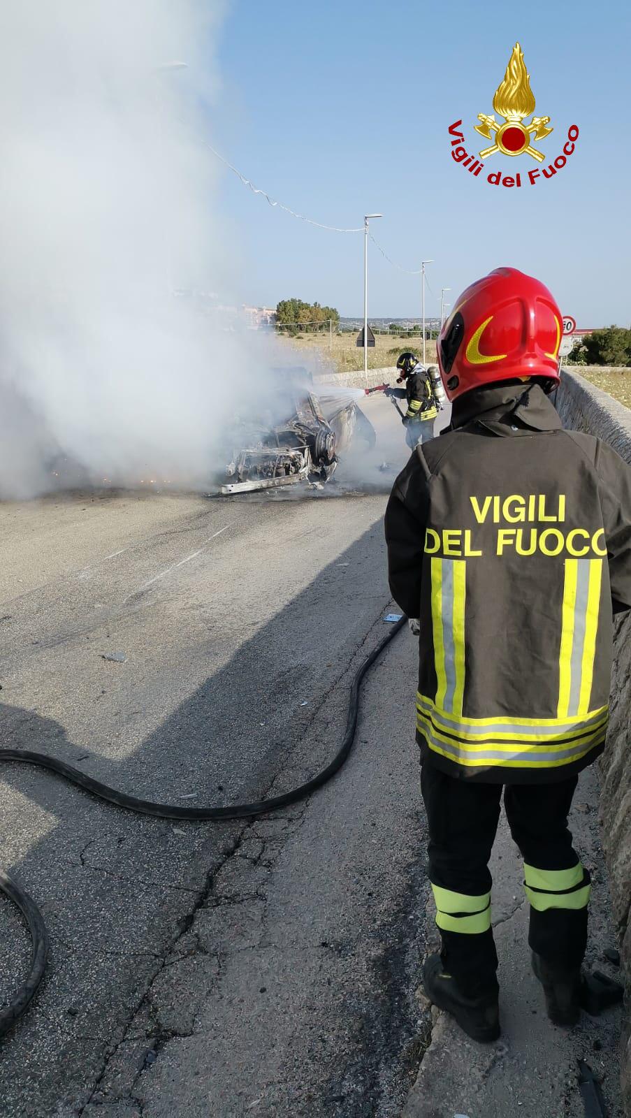 Ha preso fuoco subito dopo un incidente autonomo. L’auto è finita capottata al centro della carreggiata della provinciale 30. Gli occupanti, due persone, sono riusciti a mettersi in salvo, illesi, prima dell’arrivo dei vigili del fuoco di Siracusa che hanno domato l’incendio. La chiamata alla sala operativa è giunta alle 7.30 di questa mattina.