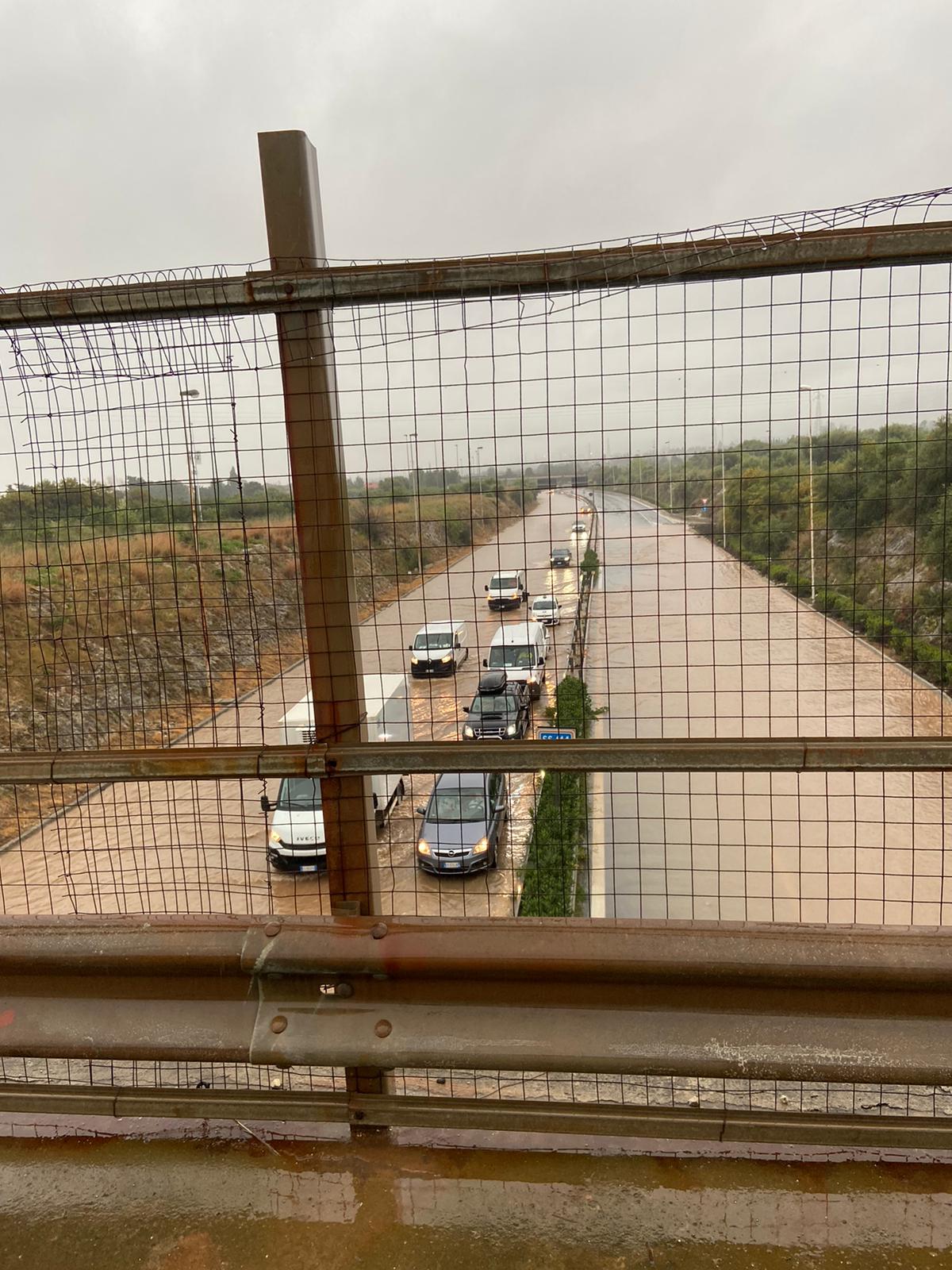 Una bomba d’acqua si è abbattuta su Priolo nel primo pomeriggio. Le copiose precipitazioni hanno causato un esteso allagamento all’altezza dello svincolo di Cava Sorciaro, nel tratto iniziale della Siracusa-Catania.