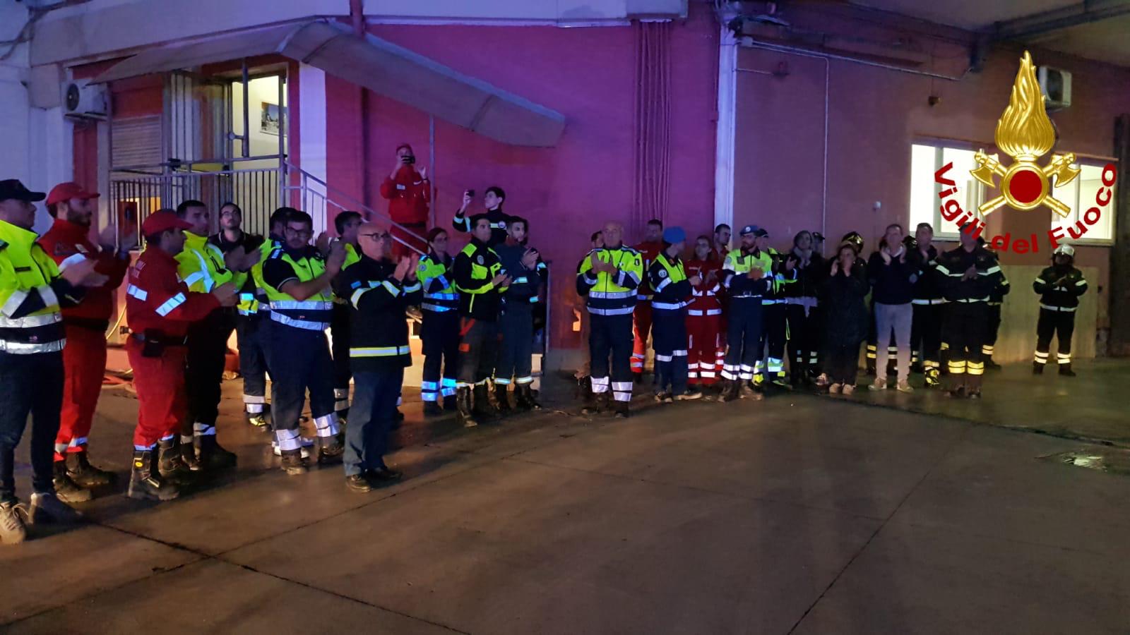 Il comandante provinciale ha voluto accogliere e salutare gli uomini e delle donne delle associazioni di protezione civile intervenuti. Poi l’abbraccio tra uniformi e divise, con le sirene a rompere la palpabile emozione.