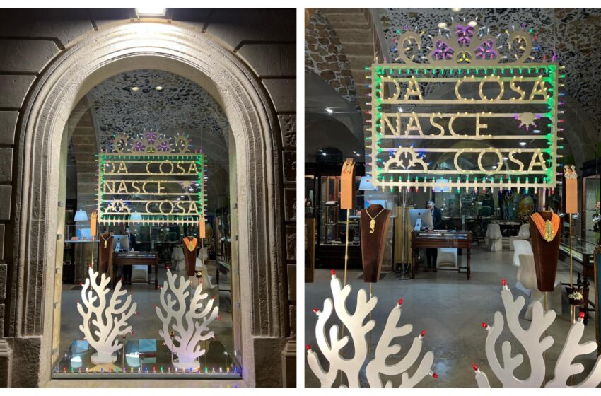 “Da cosa nasce cosa”. Questo il titolo dell’installazione che l’artista Florence Di Benedetto ha pensato e creato per la vetrina di Massimo Izzo. L’installazione inaugurata nel giorno di Santa Lucia si colloca all’interno di un percorso di ricerca che indaga il rapporto tra realtà oggettiva e realtà soggettiva, attraverso una personale teoria raffigurativa del linguaggio.