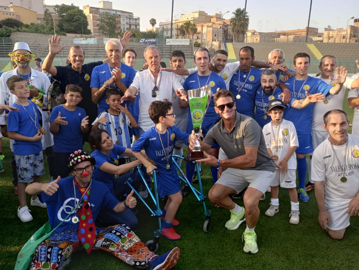 Allo stadio Nicola De Simone, migliaia di persone ieri hanno assistito al “Derby dell’Amicizia”, iniziativa organizzata dall’Aics di Siracusa e frutto della sinergia tra il comitato provinciale e la Fondazione San’Angela Merici. Un momento di sensibilizzazione sulla disabilità, fortemente voluto dal presidente provinciale Lino Russo e da Gaetano Migliore, responsabile Sport Paralimpico. La risposta è arrivata in pieno. Non è un caso se l’impianto cittadino era gremito: associazioni e famiglie insieme, per esserci, tutti insieme. In campo, le formazioni di Inclusione in Movimento e Stelle Azzurre. I “ragazzi speciali” hanno sfidato personaggi del mondo dello sport e dello spettacolo, tra gli altri l’attore Aldo Baglio, i giocatori dell’Albatro Serie A Gold di pallamano Gianluca Vinci, Juan Inacio Zungri e Leo Bianchi, l’ex bomber di Salernitana, Genoa e Siracusa Giovanni Pisano, l’ex portiere del Frosinone Massimo Zappino,l’ex tecnico del Calcio Catania Maurizio Pellegrino, il pallanuotista dell’Ortigia Christian Napolitano e numerosi ex calciatori del Siracusa. A presentare l’evento, Mimmo Contestabile, speaker di Fmitalia e conduttore di Radio Blog. Emozionante il momento dell’Inno di Mameli, affidato alla cantautrice Angela Nobile. Diversi i momenti di spettacolo e intrattenimento che si sono susseguiti. Al pomeriggio di sport e solidarietà hanno preso parte anche il sindaco, Francesco Italia e l’assessore allo Sport, Giuseppe Gibilisco. Fra gli ospiti d’onore, la campionessa olimpica di Lillehammer 1994 Manuela Di Centra e Tania Di Mario icona della pallanuoto mondiale, campionessa olimpica ad Atene 2004.