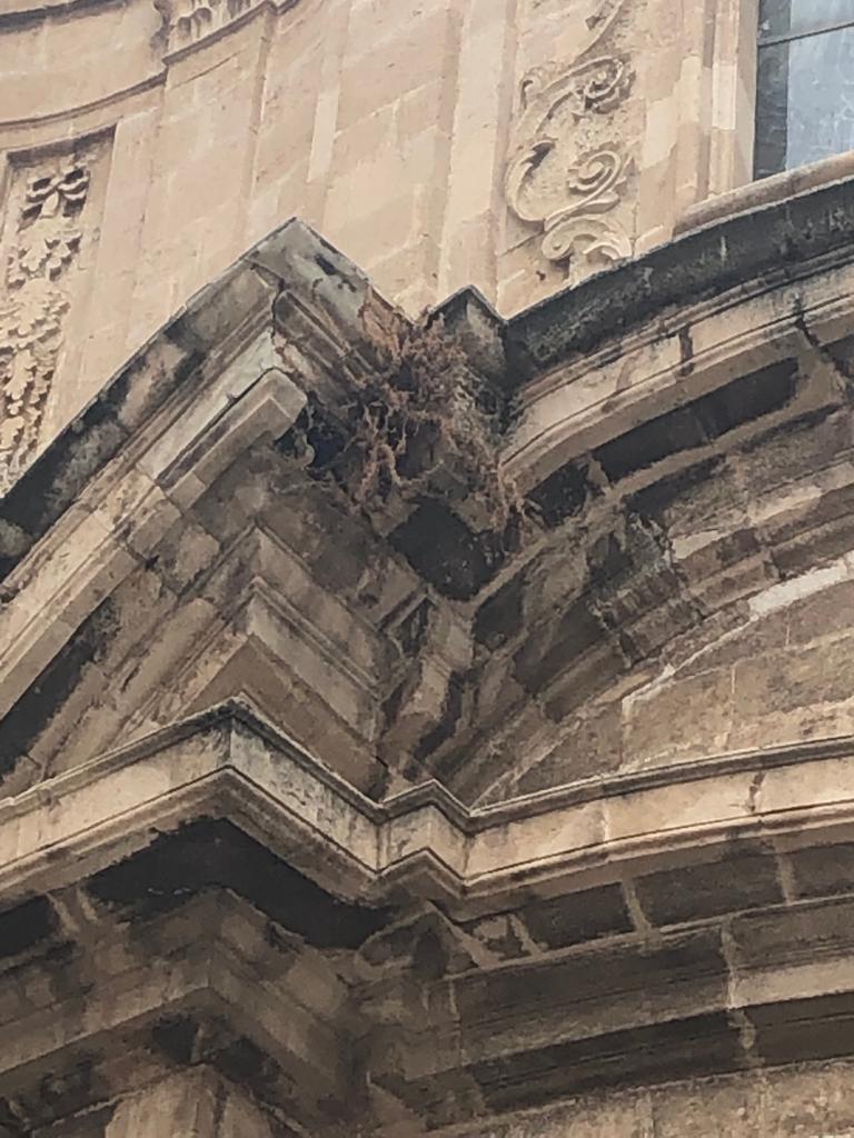 Alzate gli occhi quando camminate per le vie del centro storico. Noterete come ci sia della vegetazione che cresce là dove non dovrebbe, sulle facciate degli edifici ad esempio. Come nel caso dell’Immacolata, con un ciuffo visibile sulla pietra lavorata. O anche sui torrioni dell’Umbertino. E sin qui parliamo di luoghi dove i cedimenti sono già avvenuti, senza voler direttamente collegare l’accaduto con la presenza di vegetazione che – comunque – da un’idea della manutenzione.
