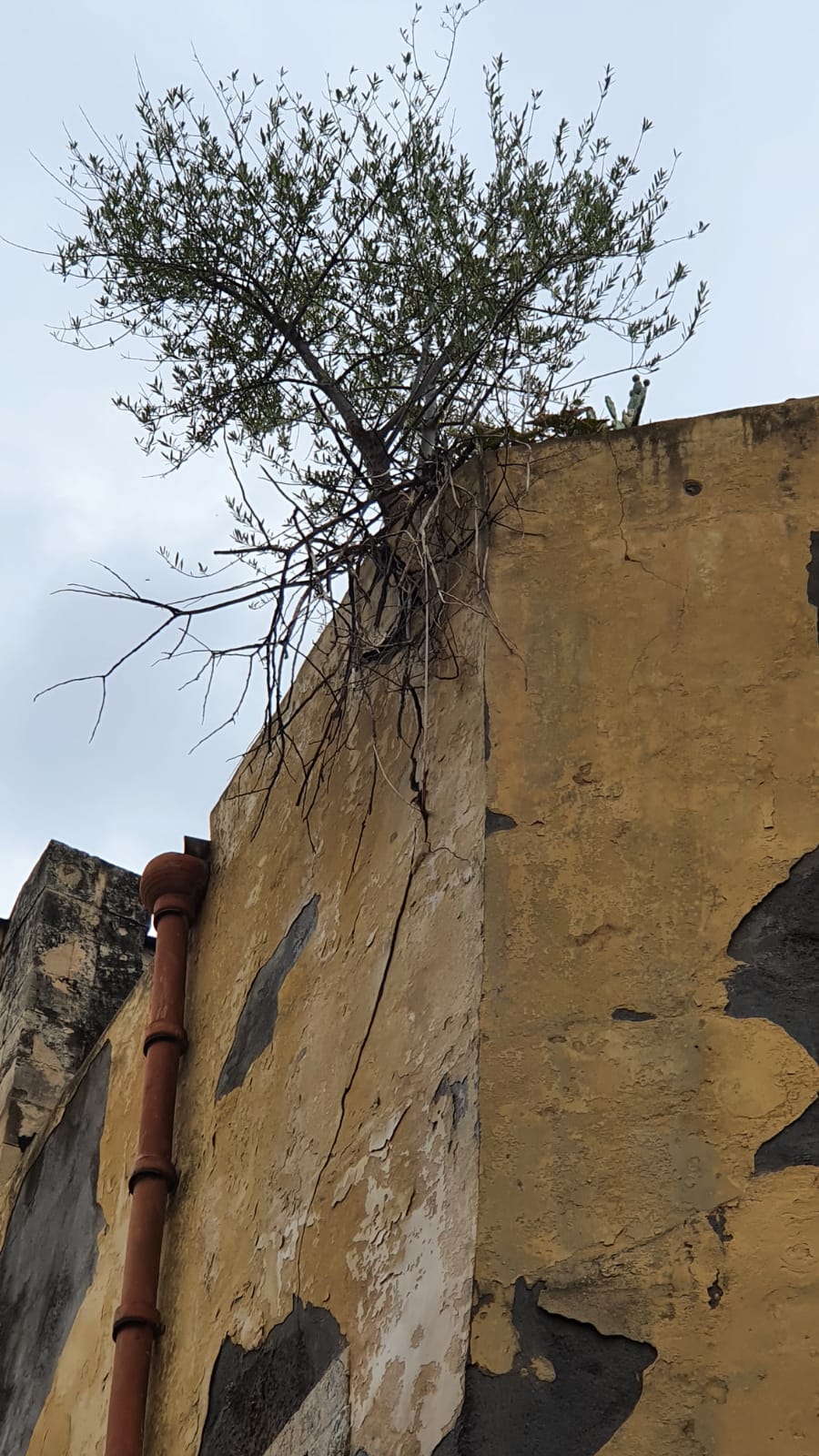 In un gioco da tristi Cassandre, non è difficile purtroppo ipotizzare che non rimarranno gli unici ed isolati episodi. Guardate la parete pericolosamente inclinata, per via di un ficus, a Montevergini. Evidente la frattura tra il pilastro ed il muro. Questione di tempo e cadrà, se non si interviene. E’ la fisica, baby.