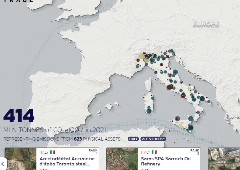 Se ci si sofferma sull’Italia, nella mappa di Climate Trace risalta la zona industriale di Siracusa, con tre cerchi blu che indicano le maggiori emissioni. La raffineria di Augusta è settima, decima quella di Priolo Nord. Al primo posto in Italia c’è l’Arcelor Mittal di Taranto, poi la raffineria Saras in Sardegna e quindi la raffineria Eni di Milazzo. Quanto alle aree metropolitane si confermano in cima alla lista delle emissioni le aree di Milano, Roma e Napoli insieme alla Pianura Padana. Curiosità: Fiumicino e Malpensa sono gli aeroporti con i livelli più alti di emissioni di Co2 ma anche Fontanarossa (Catania) viene marcato nella mappa tra quelli ad elevato impatto ambientale, finendo al 94.a posto della classifca generale italiana.