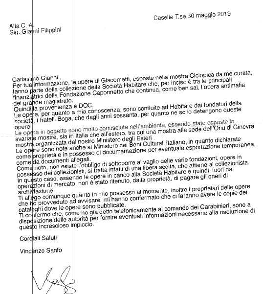 Per dirimere il nodo centrale della questione (falsi o non falsi?), bisognerà attendere il probabile intervento di un super-esperto nominato dalla Procura di Siracusa. Ma sul caso Ciclopica e le due statue di Giacometti sotto sequestro, l’organizzazione dell’evento (Sicilia Musei) ha voluto mostrare quanto meno tutta la sua buonafede e scrupolo. Ha mostrato anche le sue carte, le stesse consegnate agli investigatori.
