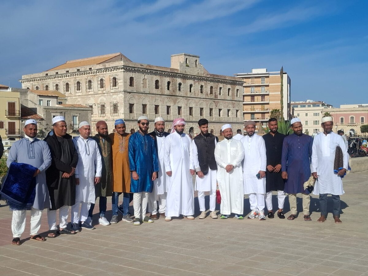 E’ un appuntamento annuale fisso, di preghiera e condivisione per la folta comunità musulmana di Siracusa. E’ la festa di conclusione del Ramadan, l'”Eid al Fitr”, “la Piccola Festa”. Questa mattina, centinaia di persone si sono date appuntamento sulla Terrazza del Talete per sottolineare, con la preghiera conclusiva, il sentito momento di celebrazione del primo giorno dopo il mese di digiuno. Dalle 8 del mattino, davanti al mare di Ortigia, i fedeli musulmani hanno salutato i primi attimi di questa giornata nel segno della condivisione, per poi riprendere ciascuno le proprie attività. L’ “Eid al Fitr” ha come sempre colorato la terrazza del Talete, con i fedeli in abiti tradizionali, inginocchiati su grandi tappeti stesi. Il tappeto è un elemento fondamentale in queste occasioni, elemento di separazione tra sacro e profano, pulito e non pulito. Per la comunità musulmana, la giornata di oggi si muove attraverso un augurio: “Eid Mubarak”, che vuol dire “Buona Festa”.