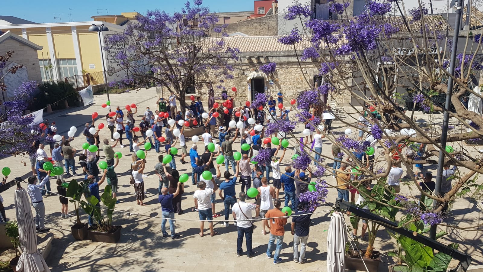 Flashmob a Cassibile, palloncini tricolore per dire no alla baraccopoli