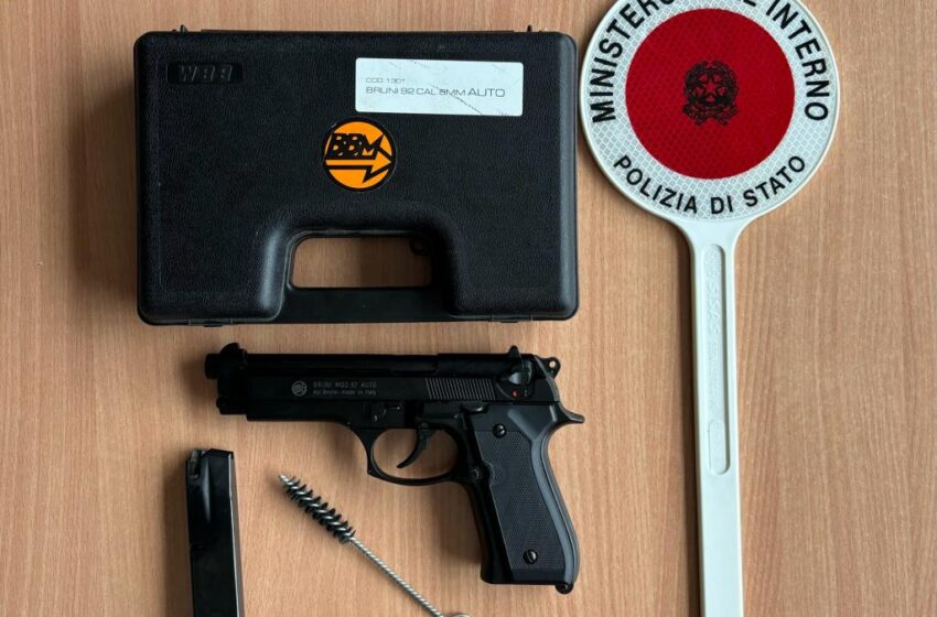 Scattata la perquisizione, gli agenti hanno rinvenuto una pistola a salve Bruni modello 92, sottoposta a sequestro.