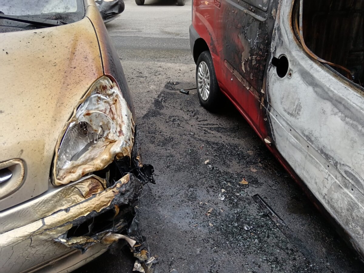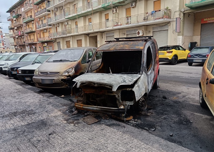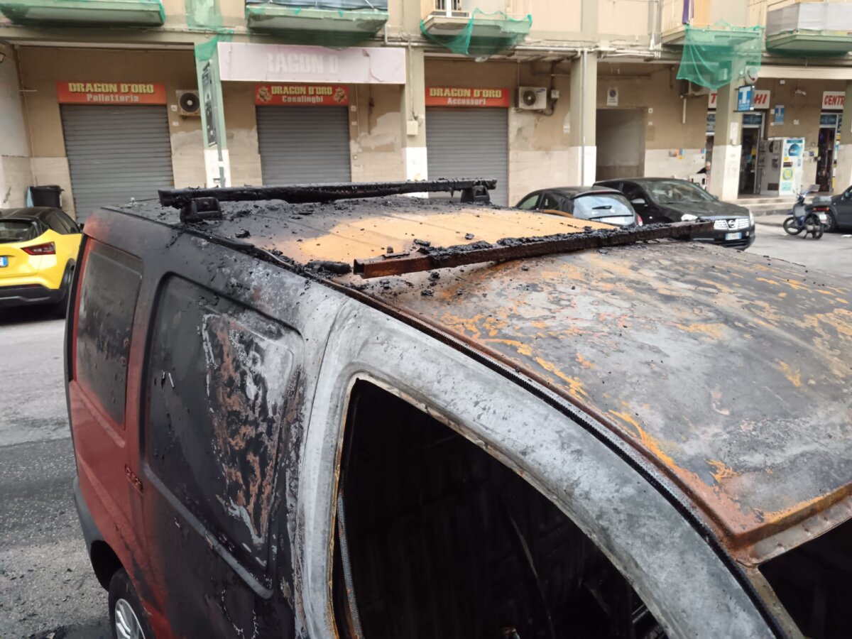 Fuoco nella notte in via Pietro Novelli: distrutto un furgoncino, danneggiate due auto