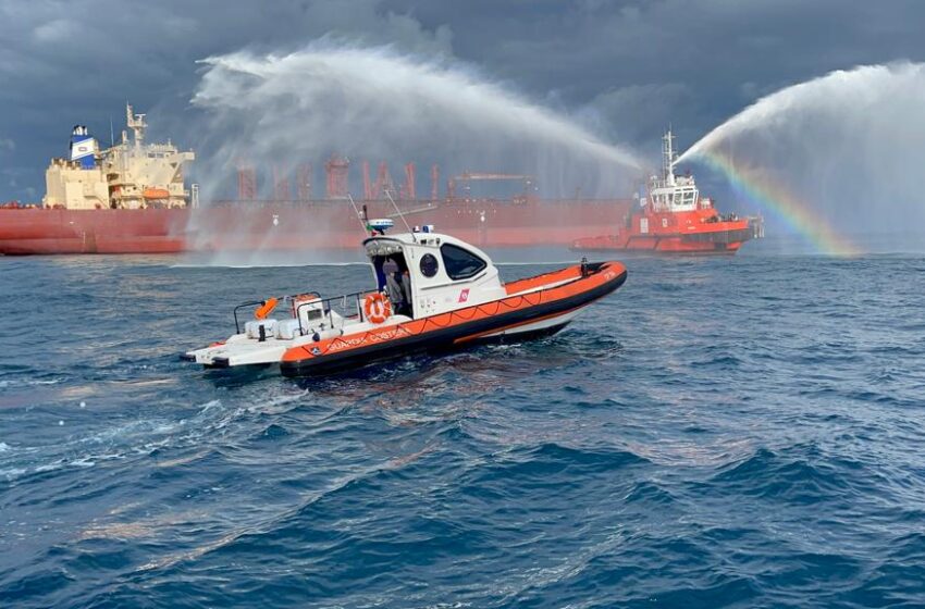 La simulazione dell’incendio è stata prontamente domata da parte del personale di bordo della motocisterna, dai sistemi antincendio del pontile, nonché, lato mare, dai rimorchiatori portuali dotati di monitori antincendio.