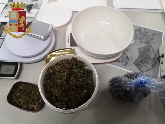 Perquisizione con i cani antidroga ieri pomeriggio in un’abitazione del plesso condominiale di via dei Mille, a Noto. La polizia del locale commissariato e le unità cinofile hanno rinvenuto nell’appartamento di una donna di 40 anni, presente al momento dell’arrivo dei poliziotti,  in un mobiletto a scaffali della camera da letto una scatola di cartone contenente 60 grammi di  hashish, circa 100 bustine in plastica per il confezionamento, un coltello ancora intriso di stupefacente e un bilancino di precisione. Accanto alla scatola era posizionata una cassetta di metallo con 600 euro in contanti, probabile provento dell’attività di spaccio.