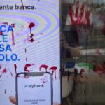 Imbrattata nella notte la vetrina di una banca:”Free Palestine” accanto all’ingresso, caccia agli autori