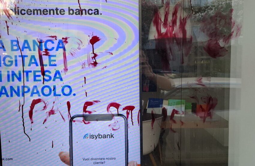 Poche ore dopo la partenza della Freedom Flotilla Coalition, salpata dal porto di Siracusa con la nave Handala, nella speranza di poter raggiungere Gaza con aiuti umanitari salvavita, ignoti hanno utilizzato vernice rossa sulla vetrina accanto all’ingresso principale della banca per scrivere “Free Palestine” . Ad accorgersi dell’accaduto è stata una guardia giurata dell’istituto di vigilanza privata “Security Service”, durante il proprio turno di lavoro. Immediatamente è scattata la segnalazione alla polizia, che ha raggiunto il luogo segnalato ed effettuato i rilievi del caso. Ulteriori elementi, utili per risalire all’identità dei responsabili del gesto, potrebbero emergere dall’analisi delle immagini catturate dai sistemi di videosorveglianza della zona. La nave Handala è rimasta alla Marina per diversi giorni prima di salpare, ieri, salutata da un folto gruppo di attivisti, rappresentanti di associazioni, comitati, partiti. Dopo una tappa a Gallipoli, si dirigerà verso la Palestina, nella speranza di riuscire a consegnare gli aiuti umanitari che trasporta. Nelle scorse settimane, un’altra nave della Freedom Flotilla è stata sequestrata dalle forze israeliane in acque.