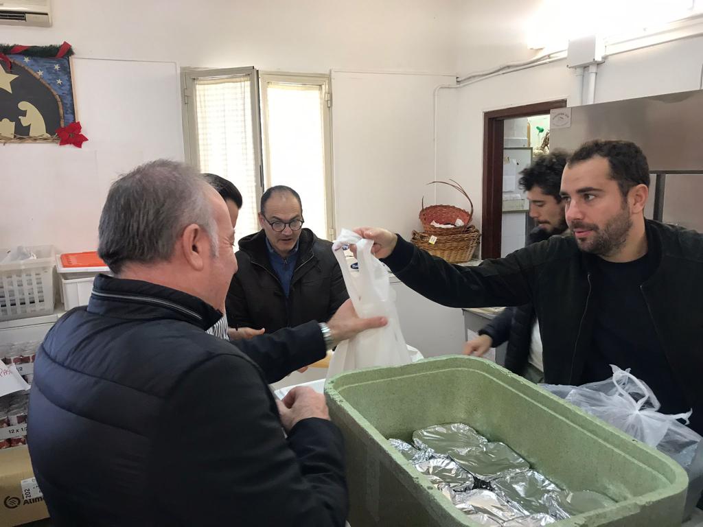 E’ stata festa grande per il pranzo “Noi con Voi”: parmigiana di pesce spada; tortino ricotta e zucchine; timballo di anelletti alla palermitana; pollo e peperoni; panettone e torrone per finire. Un menù di tutto rispetto, a cui hanno lavorato i ristoratori siracusani sin dal mattino, nelle cucine della mensa del Pantheon. Poi, all’esterno, la gioiosa distribuzione alle tante persone in attesa.