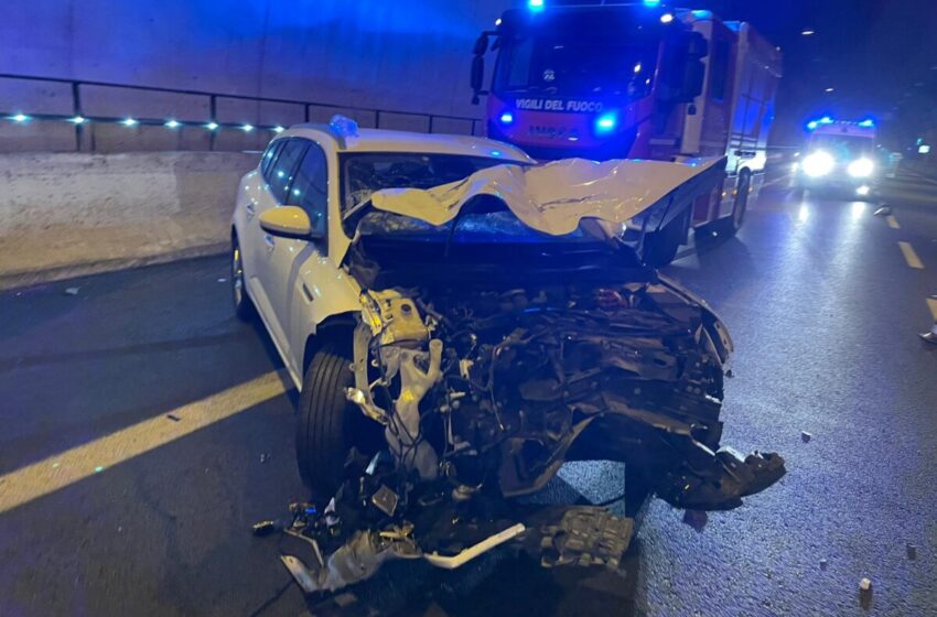 Incidente in galleria, auto si ribalta dopo tamponamento: due feriti lievi