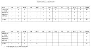 A febbraio 2024, gli incidenti con pedoni coinvolti e con prognosi inferiore ai 30 giorni sono scesi a 5 (2 a febbraio 2023, ma uno fu mortale). Un solo sinistro con persona a piedi a marzo 2024 come ad aprile e fino al 13 maggio 2024.
