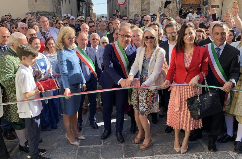 A tagliare il nasto all’inizio di via Nicolaci, oltre al sindaco Corrado Bonfanti c’erano anche la Console Generale degli Stati Uniti a Napoli Mary Ellen Countryman, la Capo Missione del Governo Canadese alla Santa Sede Isabelle Savard, il delegato del Ministero degli Affari Esteri Giovanni Maria De Vita, le deputate nazionali elette nelle circoscrizioni Estere On. Fucsia Fitzgerald Nissoli e. On. Francesca La Marca. Presenti anche alcuni sindaci delle città del Val di Noto e della provincia di Siracusa.