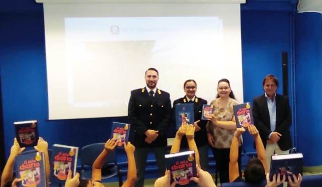 I piccoli alunni hanno ricevuto in dono dagli agenti della Polizia di Stato “il mio diario”, un’agenda scolastica con protagonisti Vis e Musa, i supereroi della legalità.