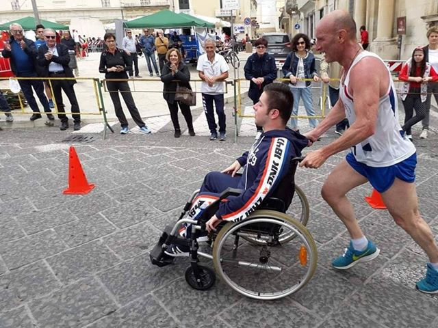 C’è una storia di sport e di amore puro. Inizia tanti anni fa, in provincia di Siracusa, e prosegue ancora oggi, come ogni amore vero, eterno per definizione. E’ la storia di un padre e di un figlio. Si chiamano Giovanni e Salvatore Bell’Arte. Giovanni è un assistente capo coordinatore della polizia. Lavora al commissariato di Avola. Andrà in pensione tra qualche anno ma non si risparmia. Suo figlio, Salvatore, che tutti chiamano Salvuccio con affetto, ama lo sport, quanto Giovanni. Da piccolo gli hanno diagnosticato una distrofia muscolare congenita. Una scoperta, in quel momento, che è stata un colpo durissimo per tutta la famiglia. Giovanni e la moglie Paola si sono giurati che avrebbero fatto di tutto perchè Salvuccio non avesse rimpianti nella  vita, per fargli vivere le emozioni della sua età, come tutti gli altri coetanei. E lo fanno sul serio. Giovanni e Salvatore corrono. Il padre spinge , Salvuccio vibra con lui, ci mette tutta l’emozione, la speranza, l’adrenalina tipica delle gare. Corrono così e hanno all’attivo diverse competizioni. L’ultima, la mezza maratona Città di Avola. A raccontare la loro storia è Massimo Boscarino, segretario provinciale Adp Siracusa. “Sono un esempio di amore puro- racconta parlando della famiglia Bell’Arte- E ‘ proprio vera quella frase che dice che c’è quello che la vita ti dà e quello che tu decidi di farne. E ‘ dall’unione di queste due cose che diventi quello che sei”