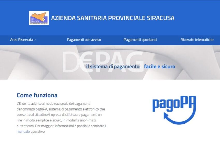 L’Asp Siracusa estende il servizio PagoPa a tutte le tipologie di versamenti amministrativi e sanitari