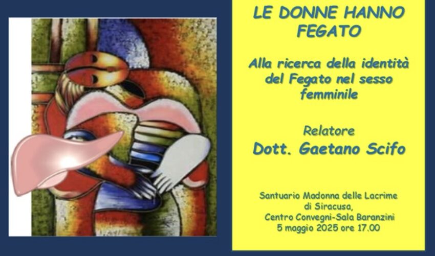 Il 5 maggio, alle ore 17.00, presso il Centro Convegni – Sala Baranzini del Santuario Madonna delle Lacrime, si terrà un incontro dal titolo: “Le donne hanno fegato. Alla ricerca della identità del Fegato nel sesso femminile”. L’evento è promosso dal Soroptimist International Club di Siracusa nell’ambito del Progetto Nazionale CuraRsi – Percorso Salute.