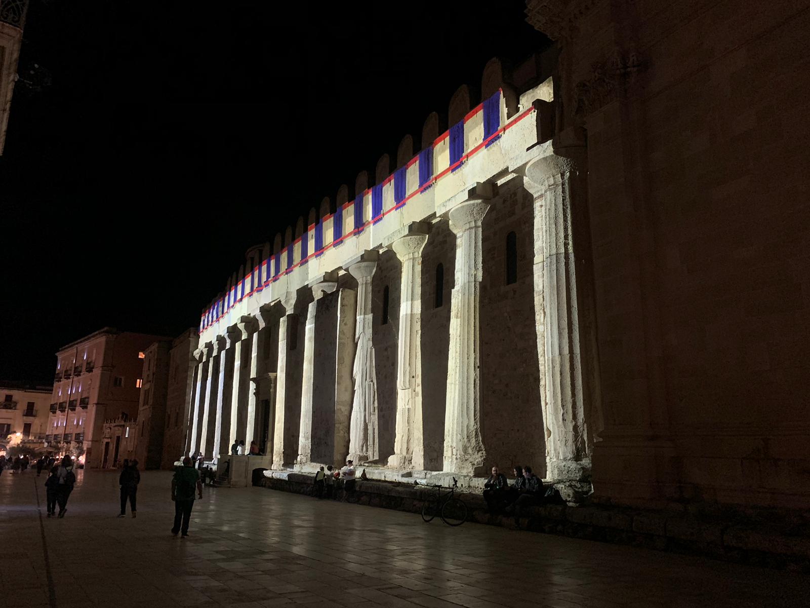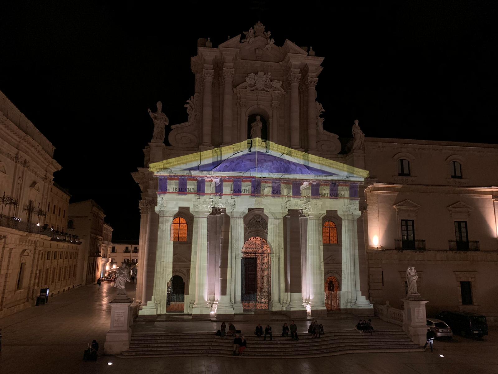 Eccolo il tempio di Atena, grazie al tecnologico mapping statico è tornato “visibile” sulla imponente facciata barocca di quella che è la Cattedrale di Siracusa. E poi anche lungo tutto il prospetto di piazza Minerva.