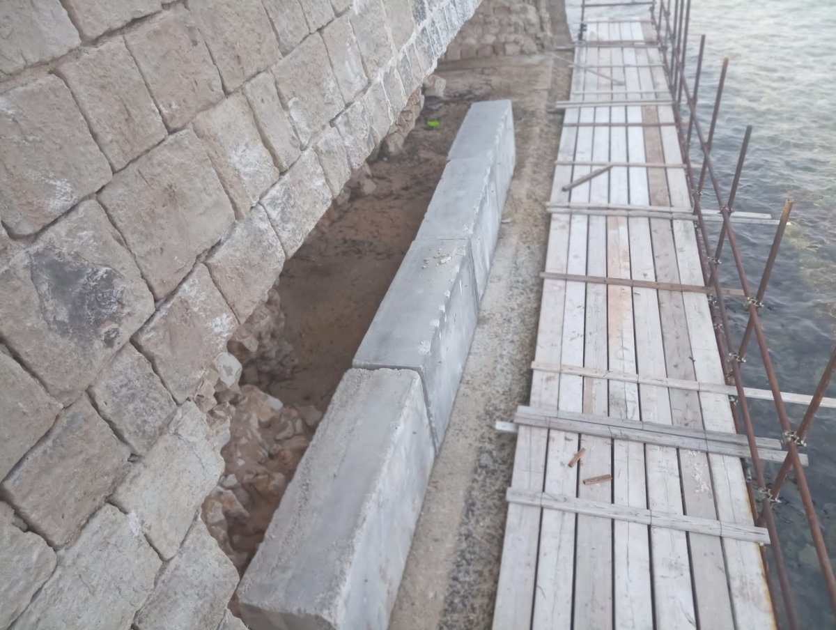 Nei giorni scorsi è stato allestito un ponteggio alla base del muraglione. Da lì gli operai hanno provveduto al nuovo riempimento con blocchi di calcestruzzo, materiale di costipazione e strati di cemento. Delle apposite e temporanee paratie proteggono le operazioni in corso che si concluderanno adesso con la copertura della parete con la posa di elementi di rivestimento identici agli originali.