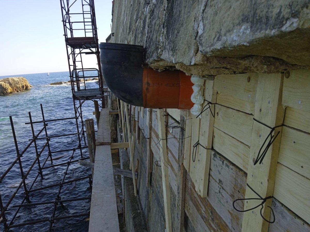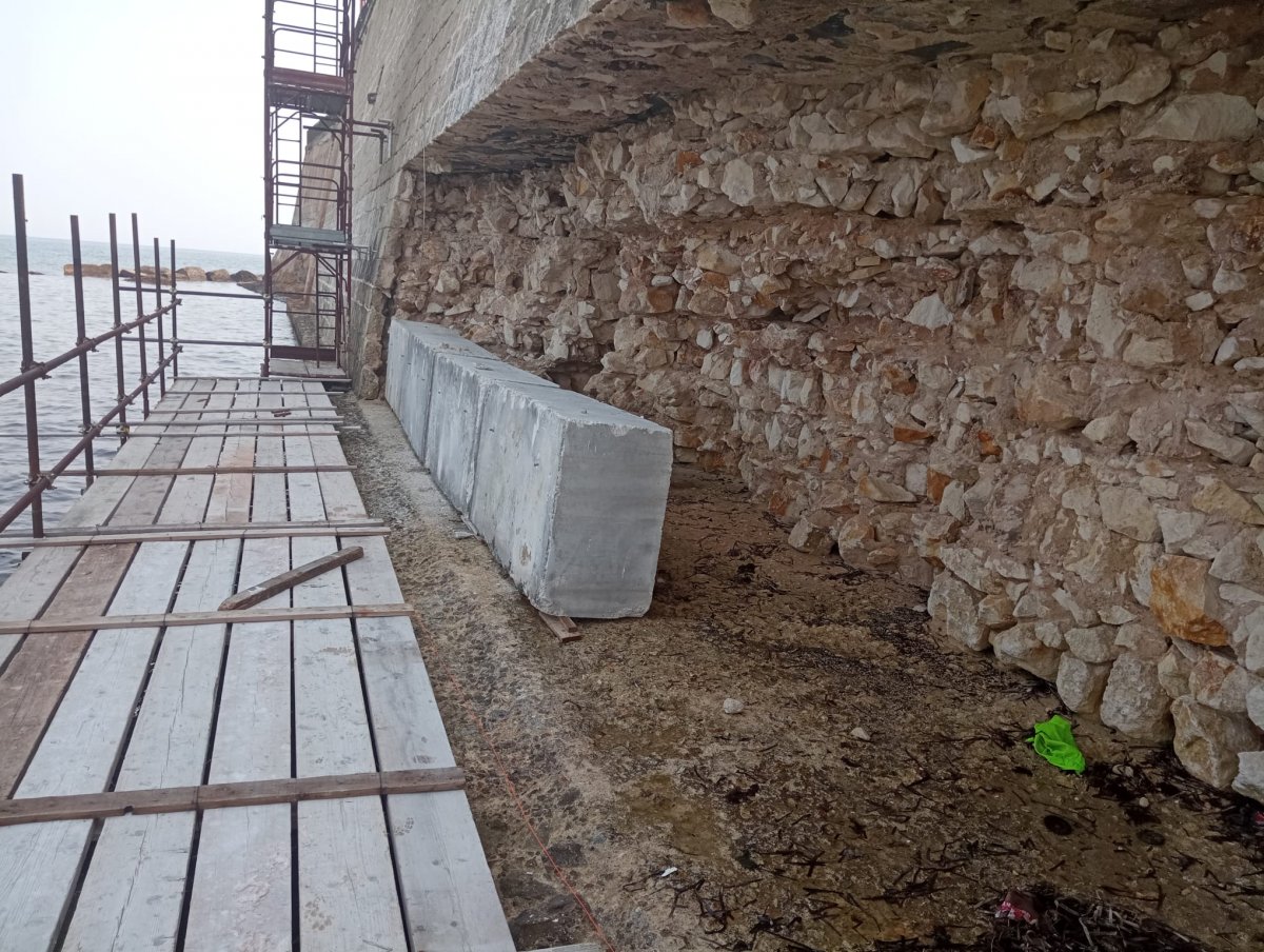 Lungomare di Levante, si “tappa” il grande buco alla base del muraglione