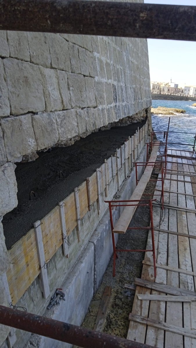 Si “tappa” finalmente il grande buco che si era aperto negli anni alla base del muraglione del lungomare di Levante, in Ortigia. Dal 2021 ad oggi, a causa delle forti mareggiate a cui quel tratto di costa è esposto, non solo il mare si era ingrottato ma – a forza di “mangiare” il materiale di riempimento – aveva anche scavato una vera nicchia, lunga e larga. Nessun rischio, si diceva, per la strada sovrastante. Per non correre rischi, il marciapiede ed alcuni posti auto sono stati però recintati ed inibiti. Il Dipartimento Regionale di Protezione Civile lo aveva inserito tra gli interventi di somma urgenza.