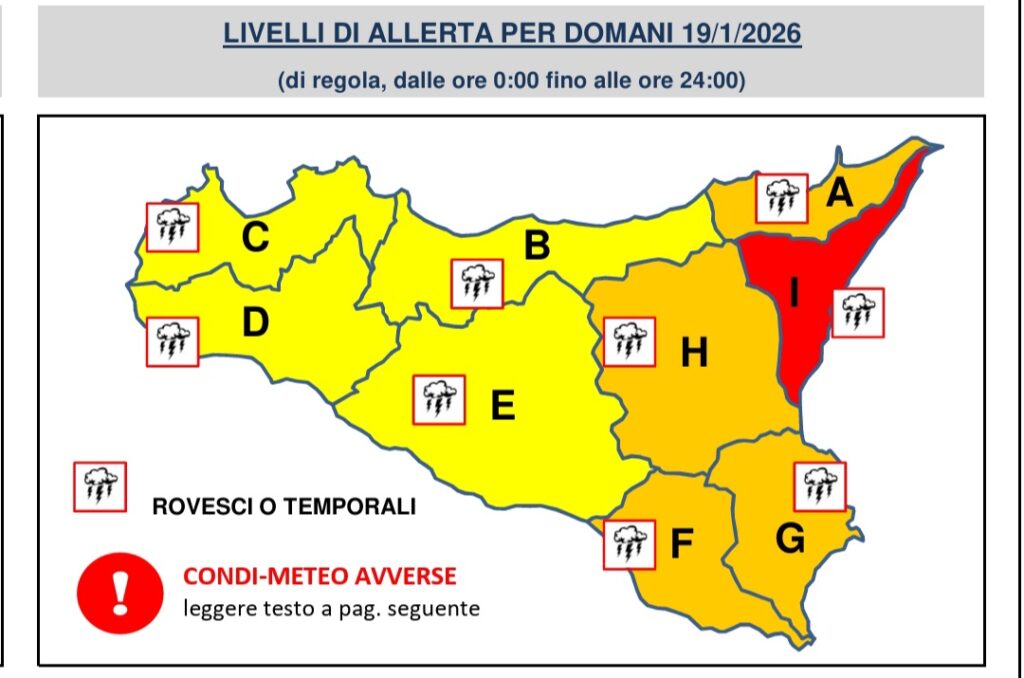 Il Dipartimento regionale di Protezione Civile, in una nota delle ore scorse, segnala il rischio di precipitazioni diffuse e localmente molto abbondanti, tali da determinare rilevanti criticità idrogeologiche, con rischio di allagamenti, frane ed esondazioni. Le aree maggiormente esposte risultano l’area etnea, i Peloritani e le zone costiere, dove sono attesi i quantitativi di pioggia più significativi. Sui rilievi, oltre i 1500 metri, non si escludono nevicate.