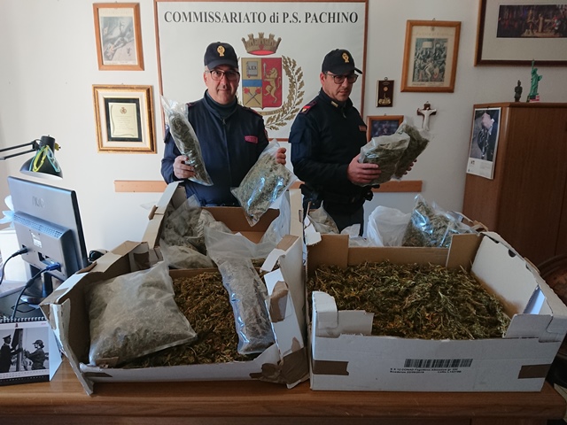 Droga per 21 chili, marijuana. Per questo gli agenti del commissariato di Pachino hanno arrestato  Giuseppe Ferrara, 33 anni e Giorgina Zocco, sua coetanea.