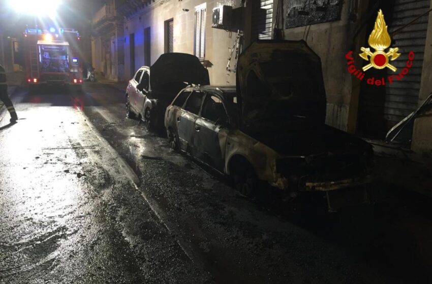 Due auto sono state completamente distrutte dalle fiamme ad Avola. Le vetture erano parcheggiate in via Mazzini, lungo la strada. Poco dopo le 2 della notte scorsa, l’incendio. Sono intervenuti i Vigili del fuoco del distaccamento di Noto. Nono sono stati trovati elementi per stabilire le cause del violento rogo. Sono andate distrutte una Audi A4 e una Fiat 500. Le indagini sono affidate ai Carabinieri di Avola.