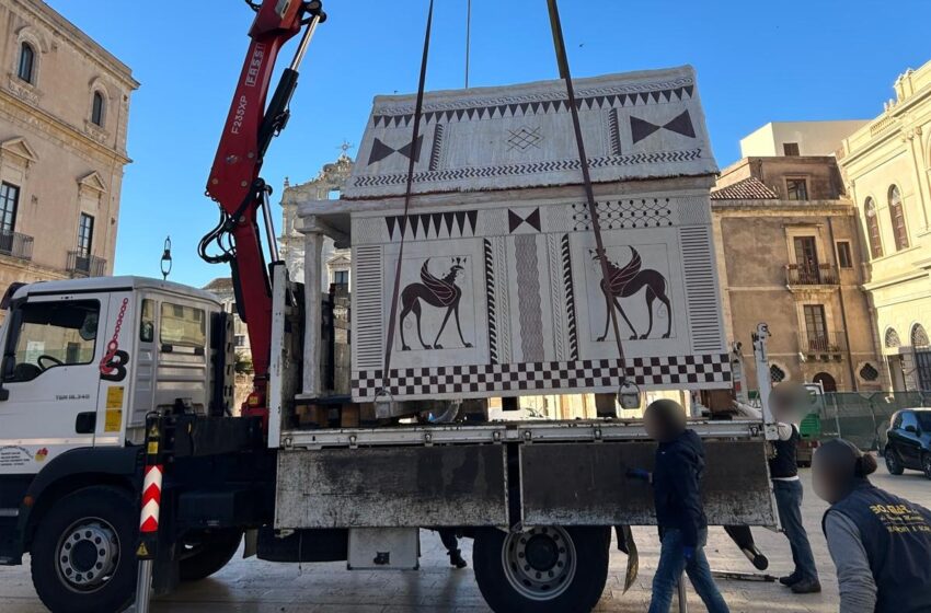 Oikos, l’ultimo viaggio. Lascia piazza Duomo per essere esposto vicino al Maniace