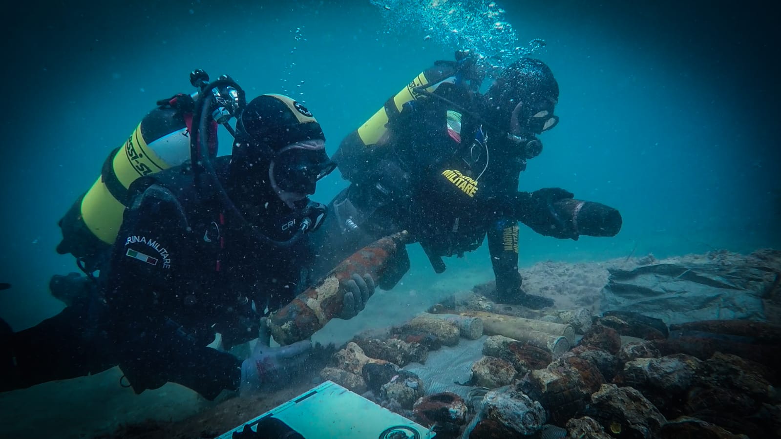 La prima operazione, che ha visto impegnati i Palombari del GOS dal 23 al 31 maggio, ha permesso di rimuovere e neutralizzare 87 bombe a mano, 232 proiettili navali di vario calibro, 12 bombe da mortaio, 64 bombe da fucile e 4.000 munizioni per armi da reparto, tutti risalenti alla seconda guerra mondiale. Mentre dall’1 al 2 giugno gli uomini dello SDAI sono intervenuti a 38 metri di profondità ed al largo di Marzamemi per imbragare, rimuovere e distruggere una grande mina da fondo inglese modello MK5.