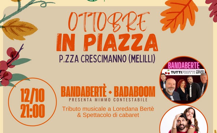 Continuano gli eventi di “Ottobre in Piazza“ nella Terrazza degli Iblei. Le piazze “Crescimanno” e “Rizzo” animeranno l’area storica di Melilli con la kermesse “autunnale” ricca di appuntamenti ogni weekend fino a fine mese.