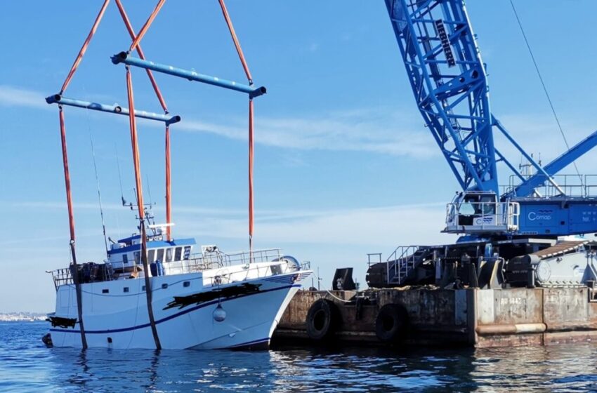 Venerdì 26 aprile, sotto la supervisione della motovedetta CP 606 e di una pattuglia a terra, la ditta specializzata interessata, per mezzo di un pontone munito di una gru di grosso tonnellaggio, ha provveduto a disincagliare ed imbragare il peschereccio, per il successivo trasporto in un cantiere navale dell’aretuseo, con scorta fornita dapprima dalla CP 606 e, successivamente, dalla CP 323, con cui si è data il cambio.