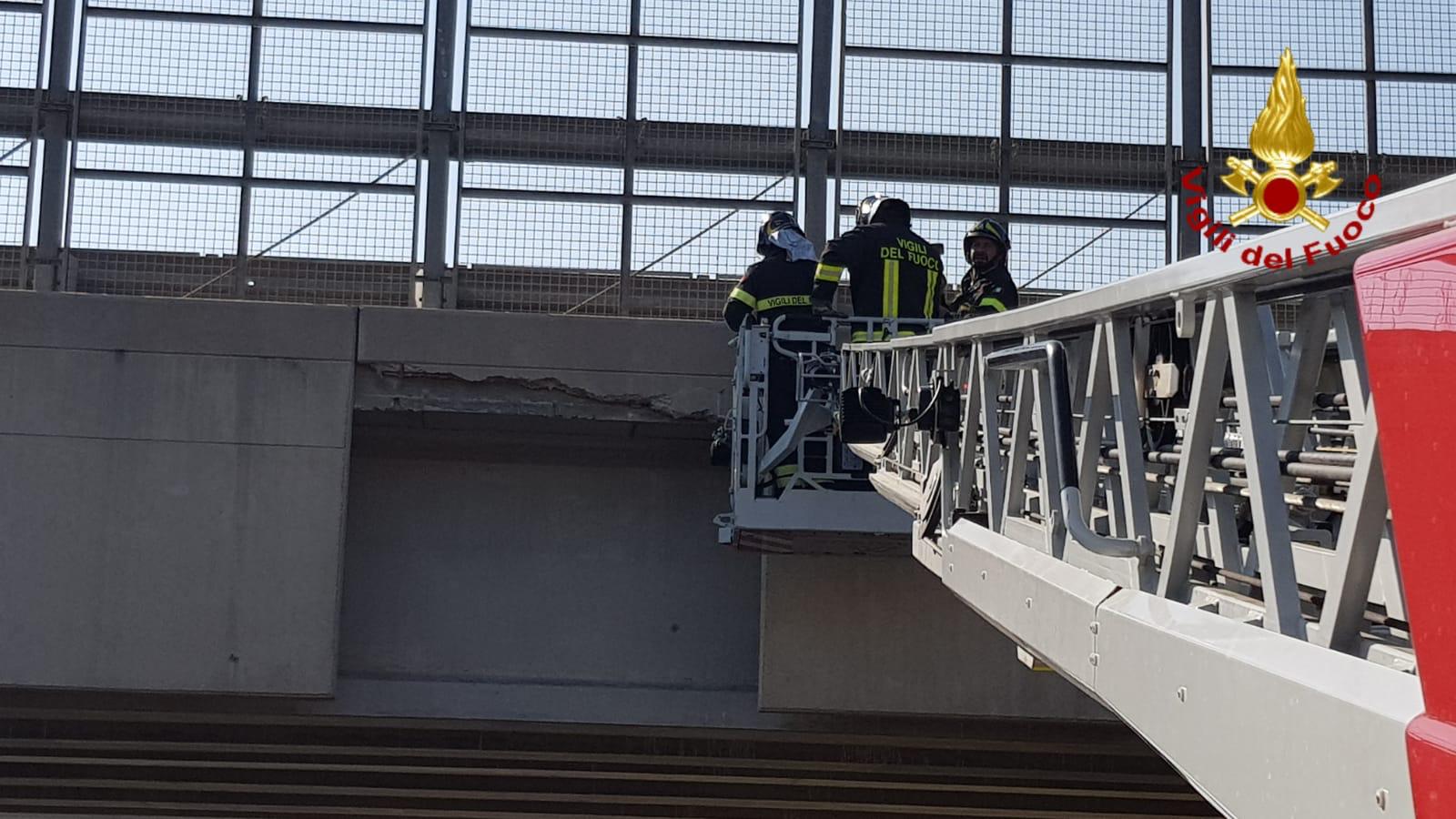 Pezzo di cavalcavia minaccia di cadere, intervengono i Vigili del Fuoco