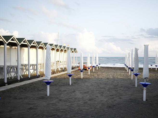 l’uscita. Obbligatorio il distanziamento tra gli ombrelloni in modo da garantire una superficie