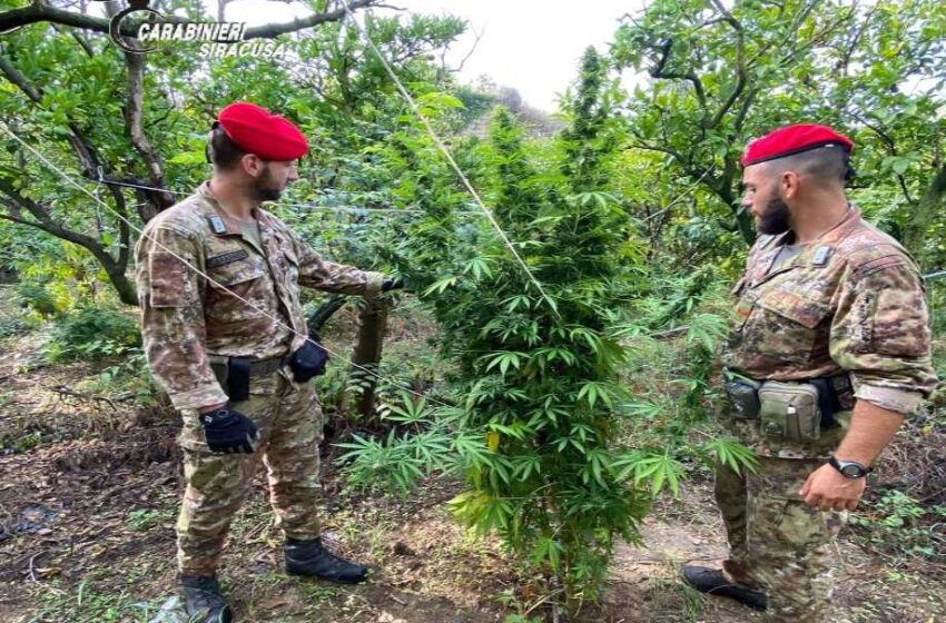 Gli accertamenti svolti dai militari hanno permesso di accreditare come la coltivazione fosse riconducibile a due uomini di 38 e 31 anni, residenti nella zona. I due, per celare le loro attività e render difficile la riconducibilità della piantagione, l’avevano abusivamente impiantata in quell’agrumeto, ordinariamente incolto e non curato dal reale proprietario, residente altrove. Sono stati quindi denunciati a piede libero all’Autorità Giudiziaria di Siracusa.