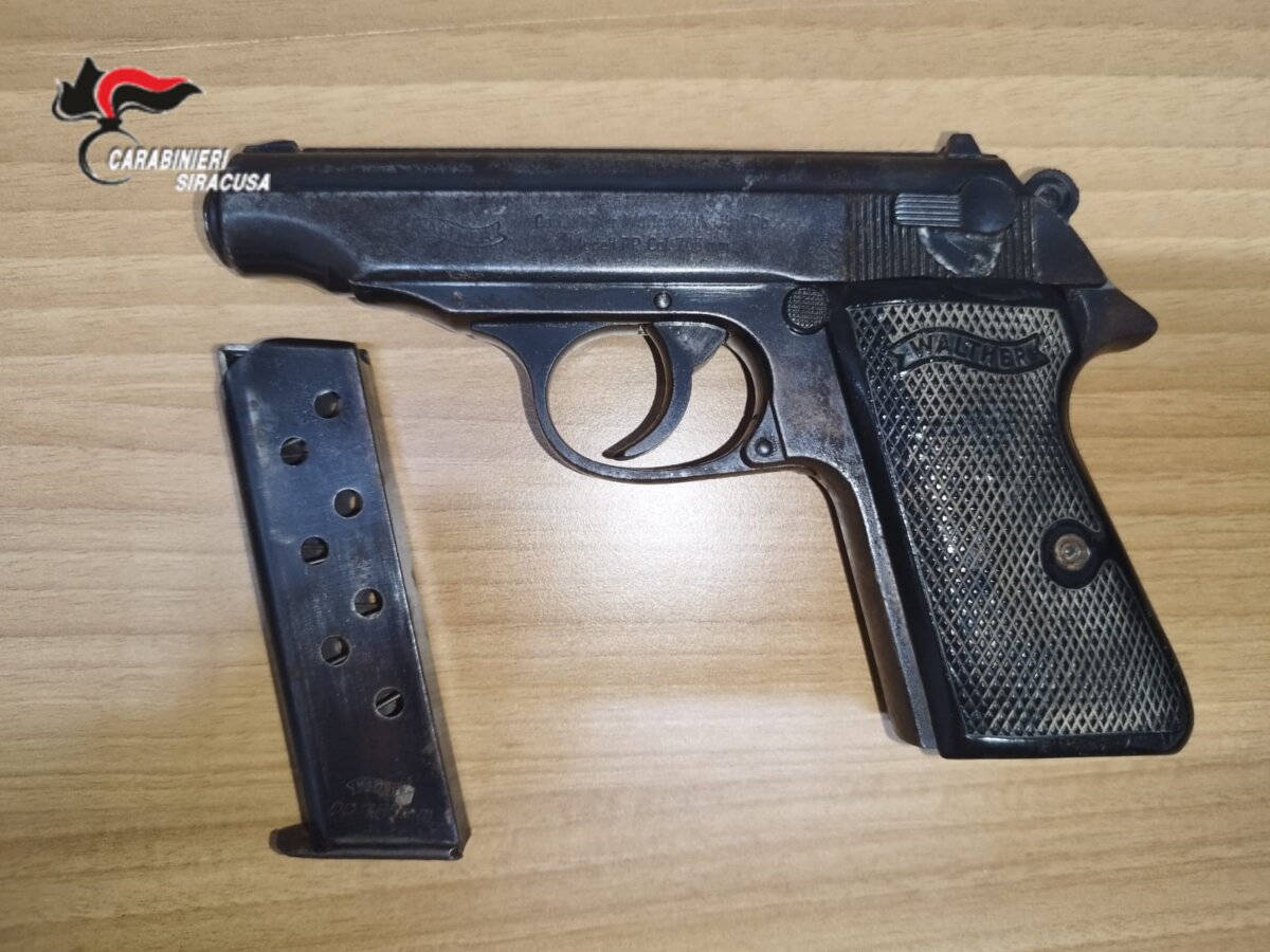 La pistola e lo stupefacente sono stati sequestrati per i successivi esami di laboratorio, lo scooter è stato sequestrato poiché privo di assicurazione e il 29enne, dopo le formalità di rito, è stato condotto presso la Casa Circondariale “Cavadonna” di Siracusa.