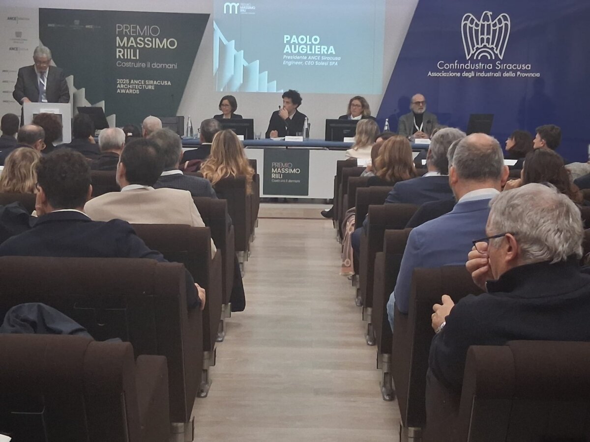 E’ stata anche un’occasione di confronto, questa mattina, la cerimonia di premiazione della prima edizione del Premio Massimo Riili, ospitata dalla sede di Confindustria Siracusa. Premiati i progetti ritenuti più validi nell’ambito dell’architettura, della rigenerazione urbana e della sostenibilità ambientale. Il premio è stato istituito in ricordo di Massimo Riili, presidente di Ance Siracusa, ingegnere e imprenditore edile siracusano. Alla cerimonia, che si è svolta nella sala Gianformaggio, hanno preso parte, tra gli altri, il sindaco, Francesco Italia, il presidente del Libero Consorzio Comunale, Michelangelo Giansiracusa, i presidenti di Confindustria Siracusa Gian Piero Reale e Ance Siracusa, Paolo Augliera oltre alla famiglia di Massimo Riili, la moglie Gloria Lugari e le figlie Francesca e Federica.  La cerimonia è stata anche un momento di confronto fra professionisti, imprenditori e rappresentanti delle istituzioni. Per la sezione “Professionisti”, il primo premio è stato assegnato al progetto “Wall2Water” di Ferla, firmato dall’architetto Francesco Giunta con Iridra – società di ingegneria – e Svi.Med. ETS.Menzioni speciali  a: “Il Giardino sulla Lava” dell’ingegnere Augusto Ortoleva e dell’architetto Aurelio Cantone; “Rigenerazione di un bene confiscato alla mafia (Cibali)” dell’architetto Giovanni Cottone; “BorgOstello” degli architetti Andrea Di Pasquali e Alessandra Marina Bruccoleri e “Rigenerazione La Plaza Skatepark” dell’ingegnere Luca Bombaci, insieme con Caleb e Stefano Barbagallo e il dottor Davide Caforio.