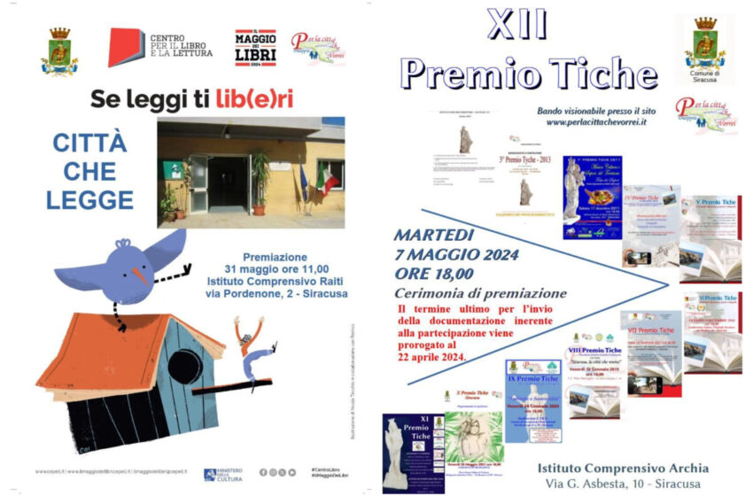 L’associazione “Per la città che vorrei” si appresta a vivere due eventi che ne caratterizzano l’attività durante l’anno. Si tratta della consegna del Premio Tiche e de “Il maggio dei libri”.