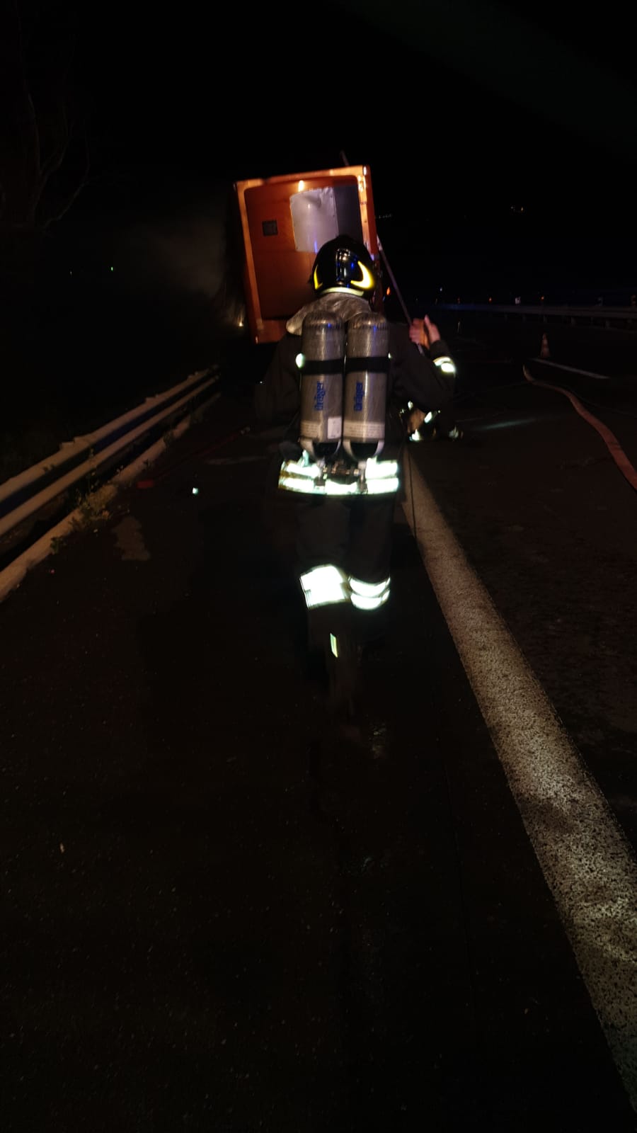 Rimorchio a fuoco nella notte sulla statale 114: c